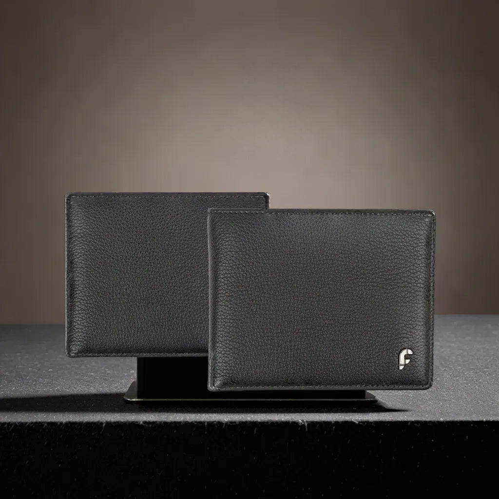 FARADA MATTE LEATHER SLIM ICONIC DOUBLE F TRIM ARABIC SANDAL BLACK