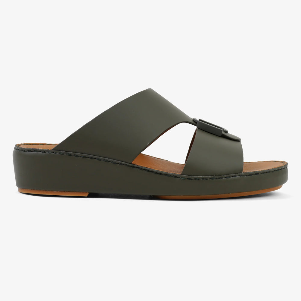 These sandals are the ideal choice for those looking to elevate their Kandura or Thobe. The earthy olive tone serves as a versatile neutral, making it easy to pair with various colors while standing out from standard black or brown options.
