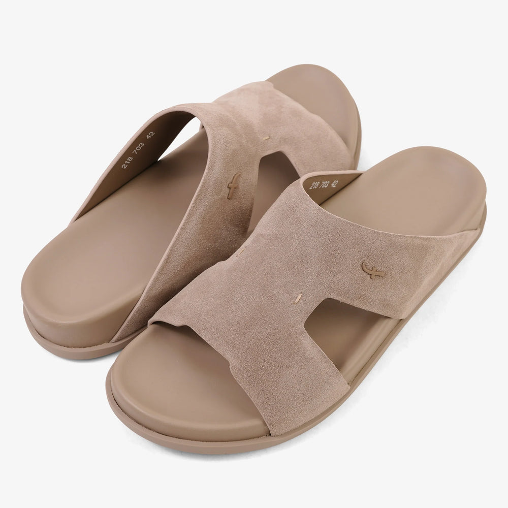 Elevate your traditional ensemble with the understated luxury of the Farada Premium Sandals in Corda. This sophisticated "rope" or muted taupe shade is meticulously crafted from high-grade genuine suede, offering a soft-touch texture that brings a modern, minimalist edge to classic Arabian footwear.